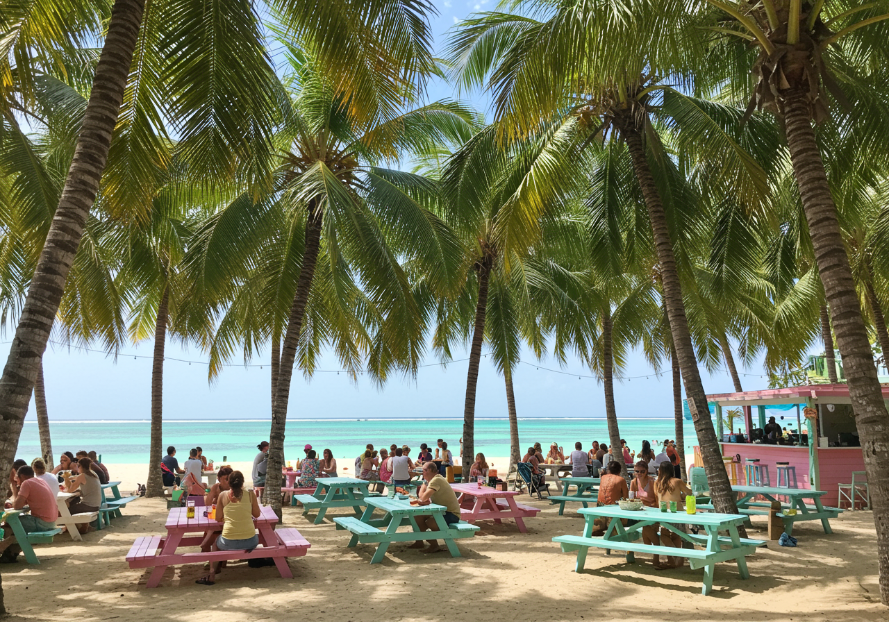 From the moment you arrive at Da Conch Shack, you’ll be welcomed by its laid-back, beachside atmosphere. Picture colorful picnic tables under swaying palm trees, the gentle sound of waves lapping against the shore, and the occasional live music performance creating the perfect island vibe. It’s the ideal spot to kick off your shoes, dig your toes into the sand, and unwind.